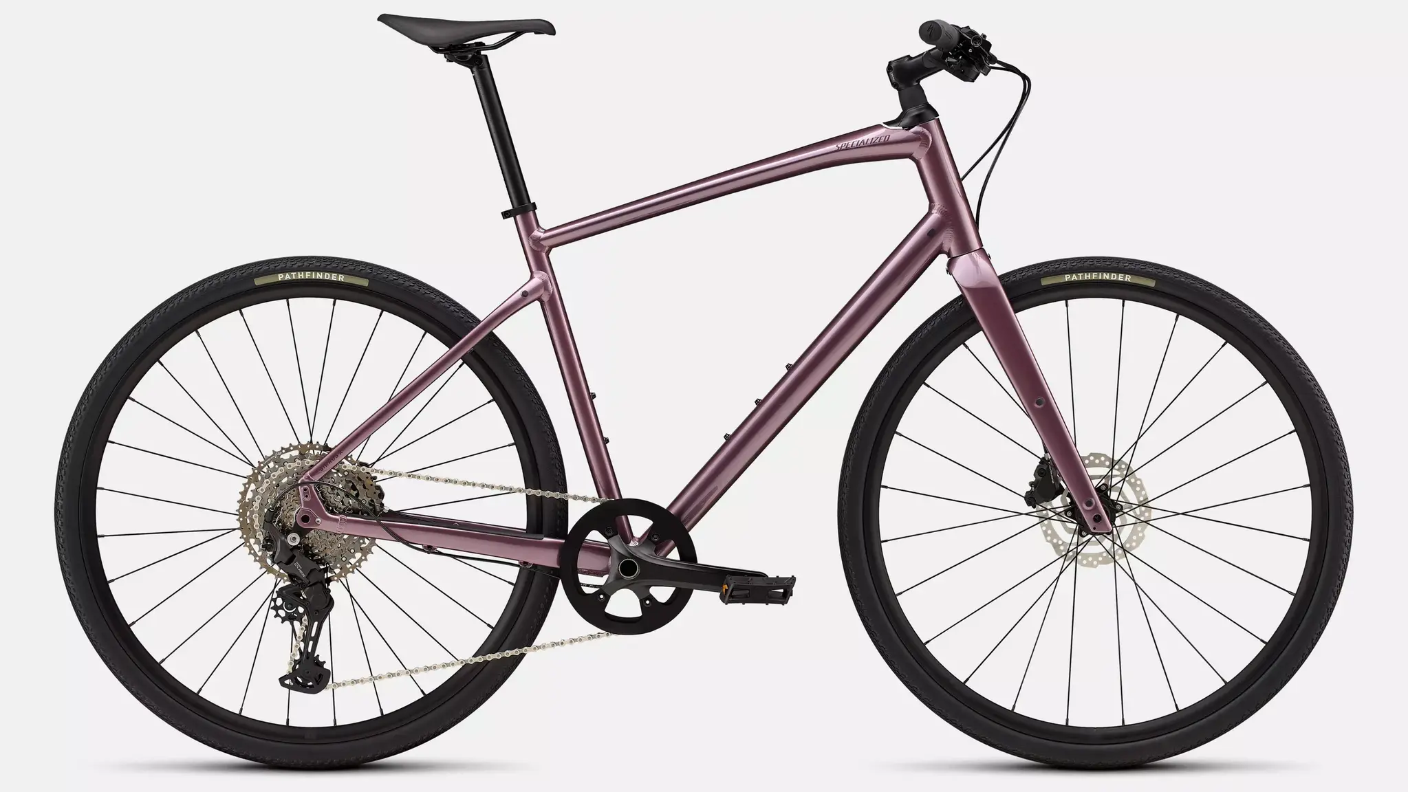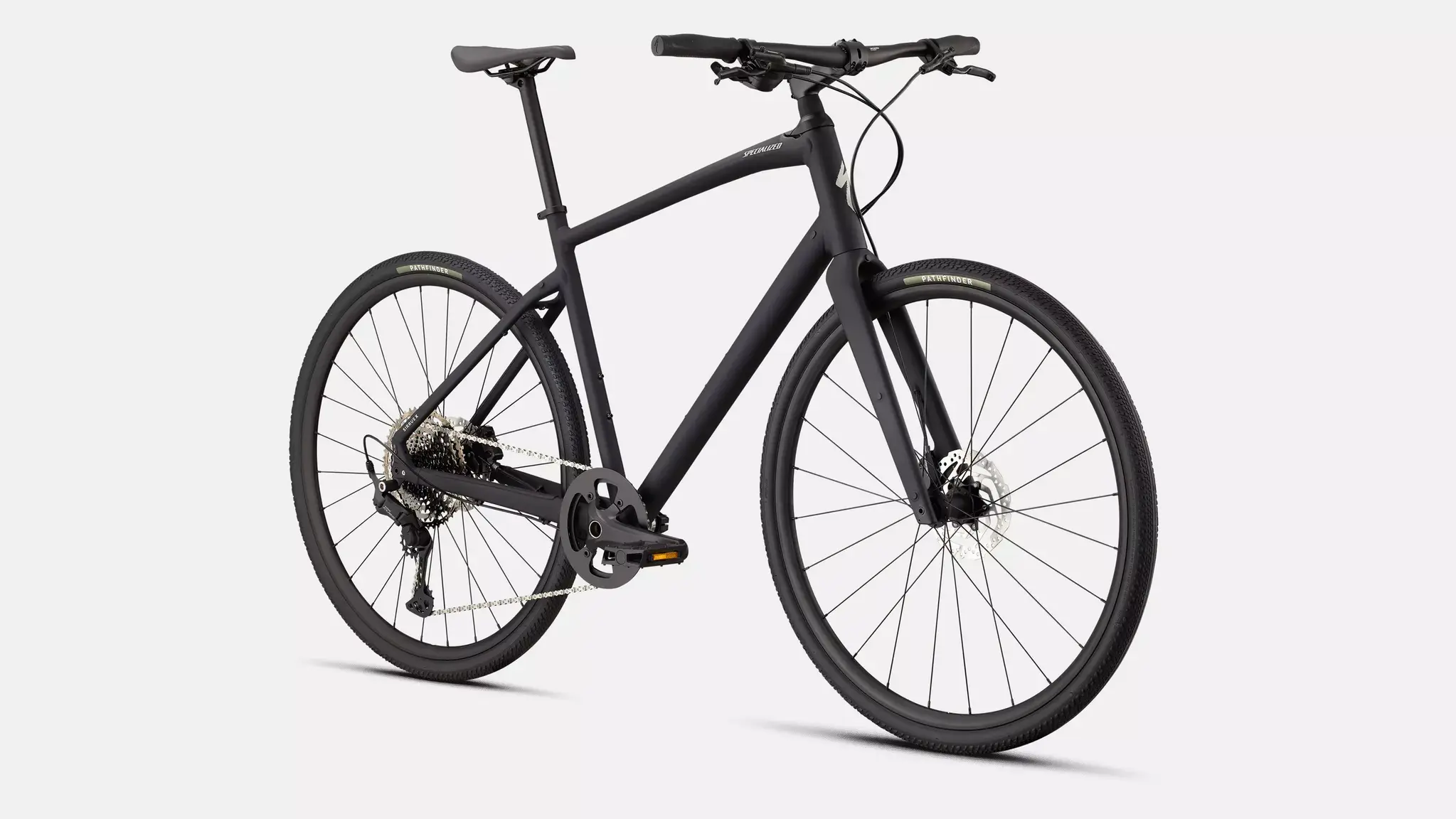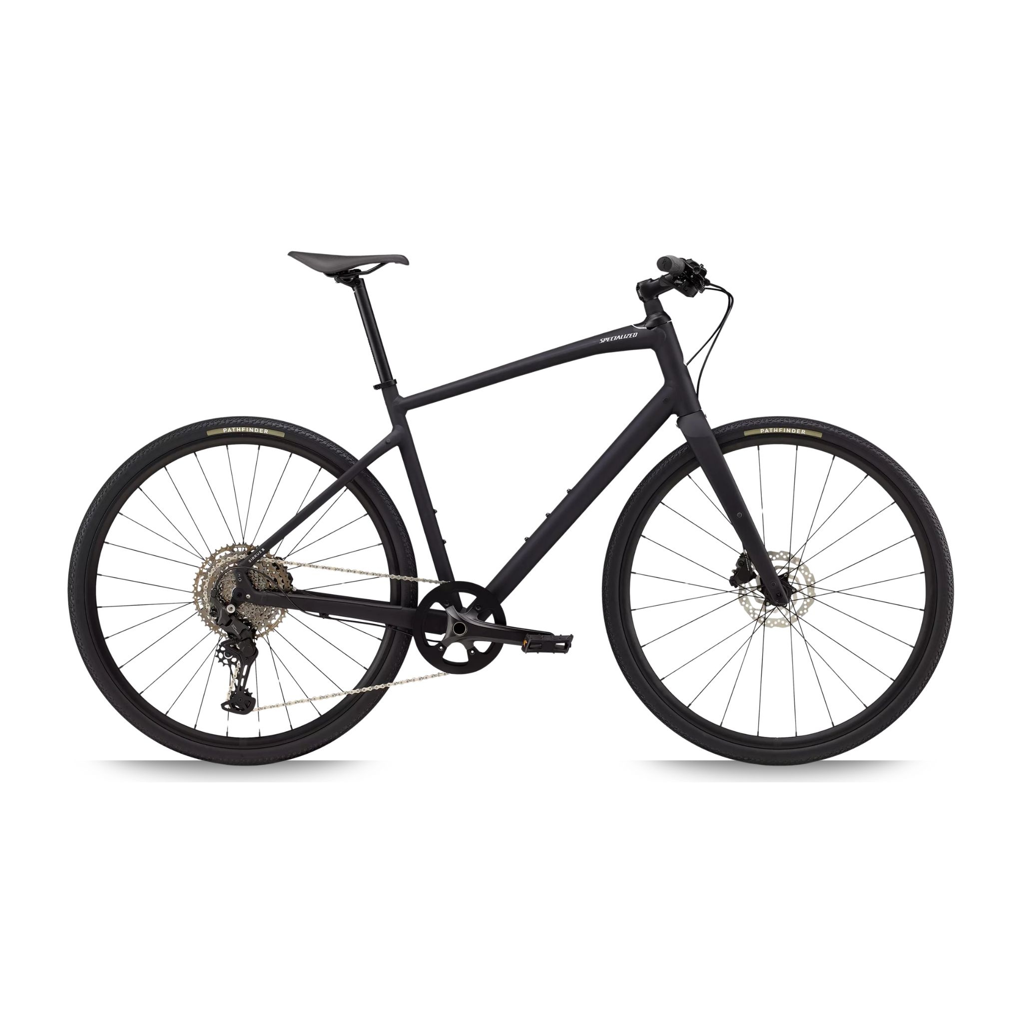 - Specialized A1SL Premium Aluminum, Fitness Geometry, butted tubing, internal cable routing, flat-mount disc, quick-release, Plug + Play rack/fender mounts