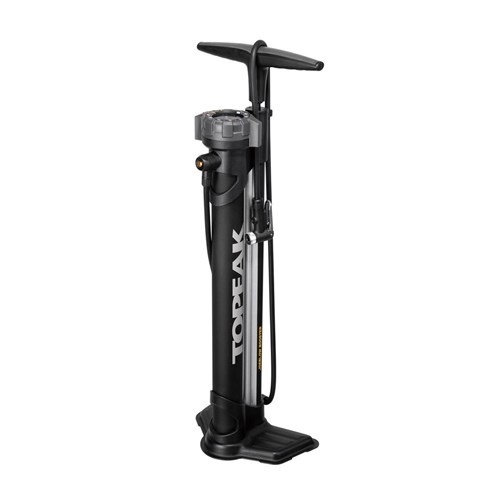 Half air compressor – Half pump. The JoeBlow® Booster pump just made it easier to install tubeless tires. This pump has an integrated aluminum air chamber that stores an air charge of one liter, up to 160psi / 11 bar, to quickly fill your tire and ensure the proper installation on a tubeless rim, just like a shop compressor. Once you flip the selector from “CHARGE” to “INFLATE” mode, air bypasses the chamber and flows directly into your tire like a standard pump. The top-mounted easy to read gauge, air release button and comfortable dual density polymer grip, combined with its extra-long hose and stable base makes mounting tubeless and standard tires a breeze!