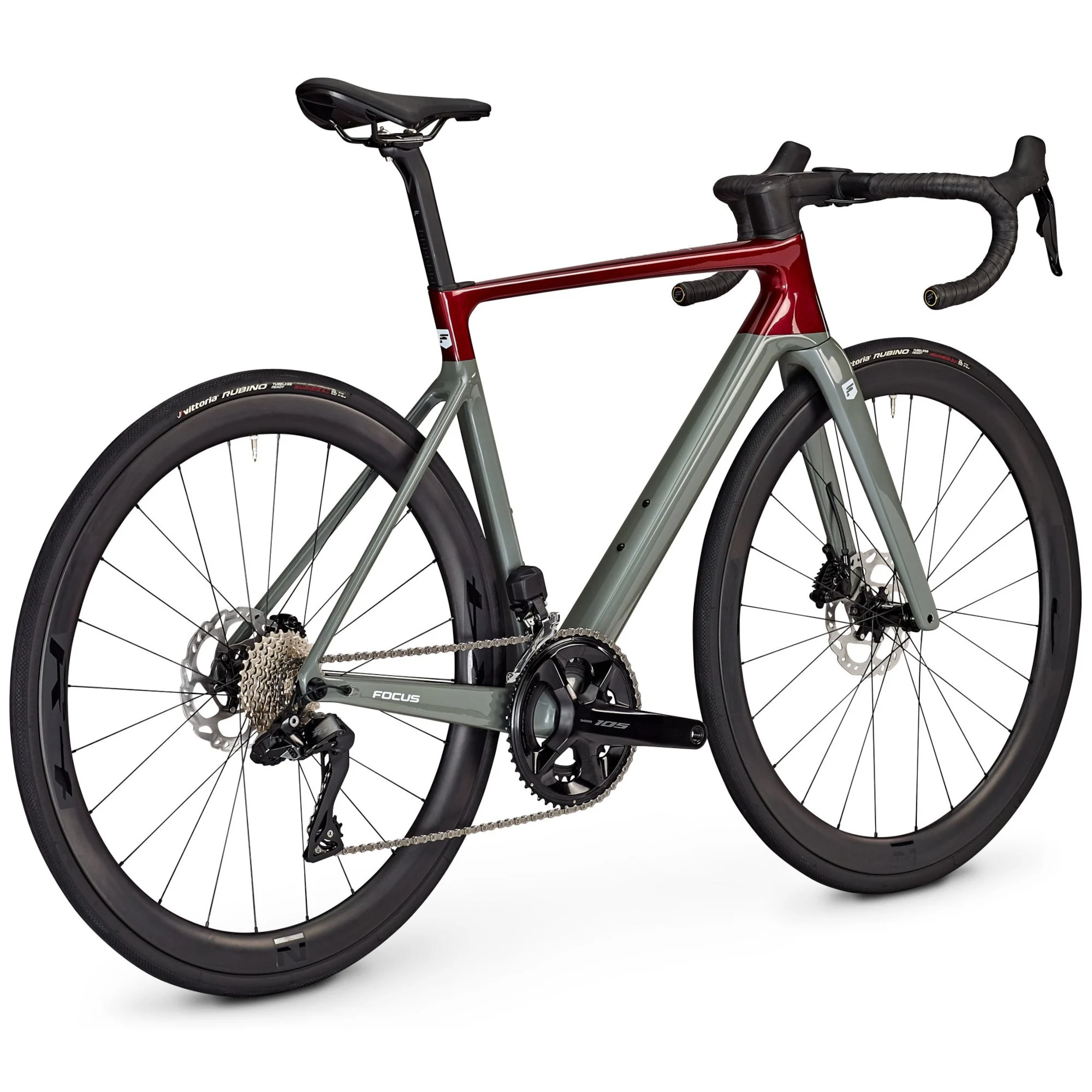 Product Name: FOCUS IZALCO MAX 8.9 - Carbon Road Bike - 2024 - Mahagonyred glossy / Slategrey glossy Manufacturer: FOCUS Bikes Item Code: FOU668859 activity: Cycling gender: men material: Carbon usage bikesport: Road Bike rims: Carbon | 21-622 | 45 mm height chain: Shimano Deore CN-M6100 cassette: Shimano Ultegra CS-R8100 | 12-speed shifter: Shimano 105 R7150 Di2 rear derailleur: Shimano R7150 Di2 front derailleur: Shimano R7150 Di2 bottom bracket: Shimano Pressfit Road BB86 chainring ratio: 50-34 crankset: Shimano 105 R7100 brakes: Shimano 105 R7170, Di2 wheels: Novatec R4 seat post model: FOCUS Aero Carbon | D-shape | 350 mm | set-back: 15 mm saddle: Selle Royal Groove SRX handle bar: BBB Basic, aluminium | drop: 125 mm, reach: 70 mm stem: FOCUS C.I.S. 2.0 integrated | 31.8 mm | aluminium | with Garmin / Wahoo-Mount fork: MAX technology carbon | integrated cable routing | 100x12 mm | disc | flat mount headset: ACROS IS 52/286-IS52/40 (ICR) | FOCUS integrated C.I.S. frame: Carbon technology | TA 142x12 mm | flat mount 160/140 mm | internal cable routing groupset: Shimano Di2 (electronic) gear ratio: 11-30 number of chainrings: 2 shifting system: 12-speed shifting actuation: Electronic brake type: Disc Brake wheel size: 28" (635mm) seatpost: Seatpost rigid tires: Vittoria Rubino TLR | 700 x 28C | Folding brake actuation: Mechanical Model year: 2024 Collection: Full year Color: Grey, Red fork construction: Rigid Fork cable routing: fully integrated Manufacturer page: http://www.focus-bikes.com