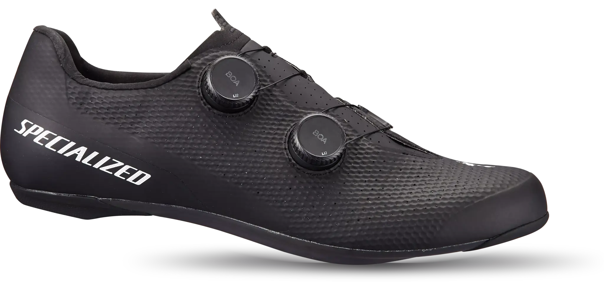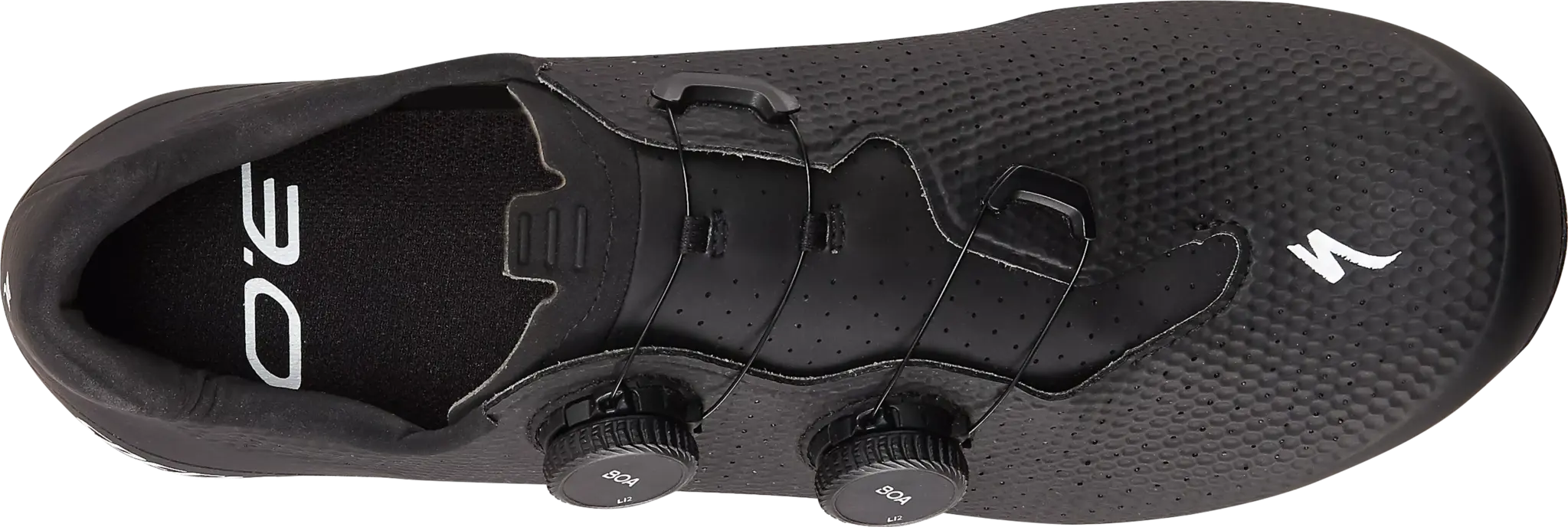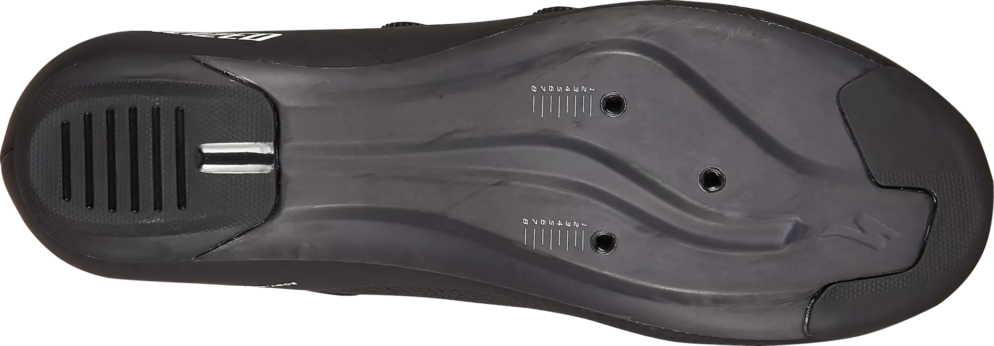 Carbon Plate: The Torch 3.0 features a lightweight, unidirectional carbon plate that enables balanced stiffness throughout the shoe, all while using less material, thus saving weight and ensuring efficient power transfer, mirroring its S-Works counterpart. Additionally, large rubber grips on the outsole of the toe and heel provide a stable, grippy platform for a seamless transition when pushing off the pavement to clip in or coming to a stop at a traffic light.