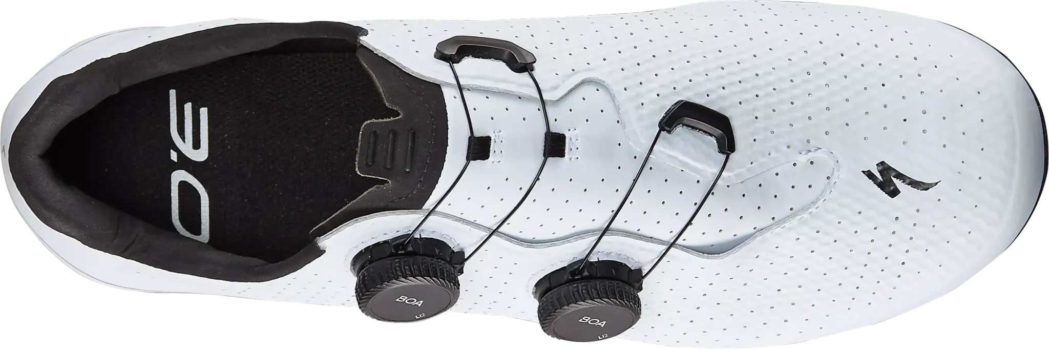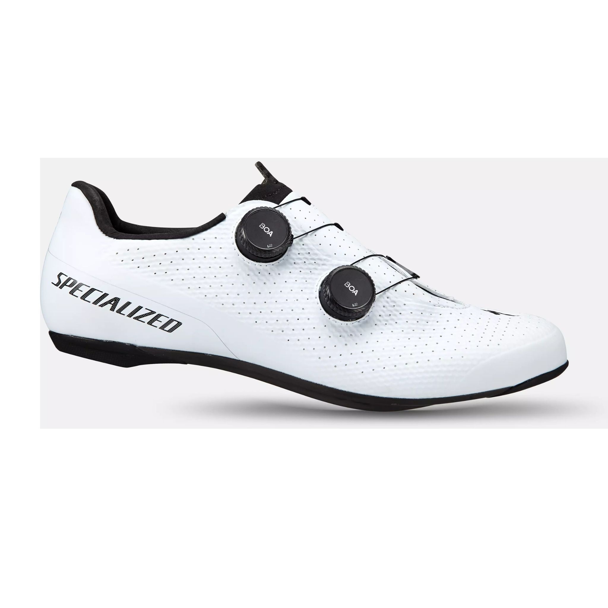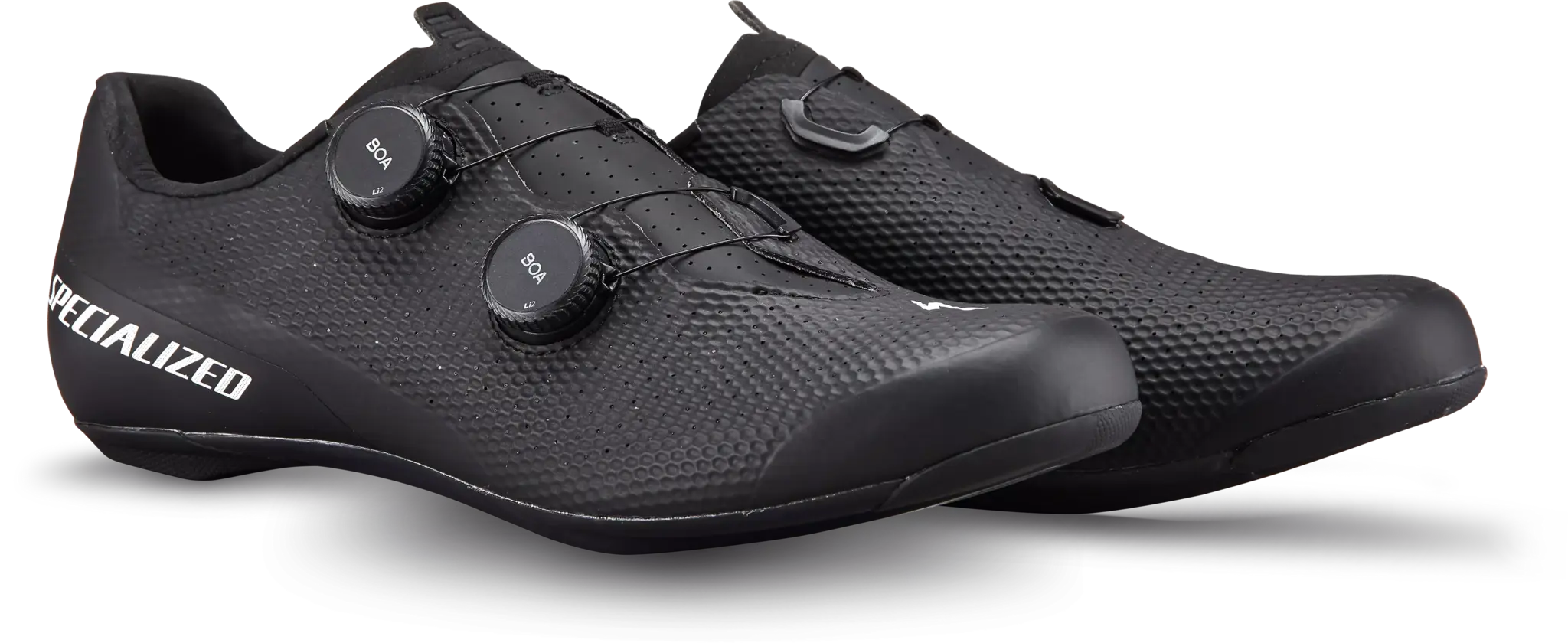 Carbon Plate: The Torch 3.0 features a lightweight, unidirectional carbon plate that enables balanced stiffness throughout the shoe, all while using less material, thus saving weight and ensuring efficient power transfer, mirroring its S-Works counterpart. Additionally, large rubber grips on the outsole of the toe and heel provide a stable, grippy platform for a seamless transition when pushing off the pavement to clip in or coming to a stop at a traffic light.